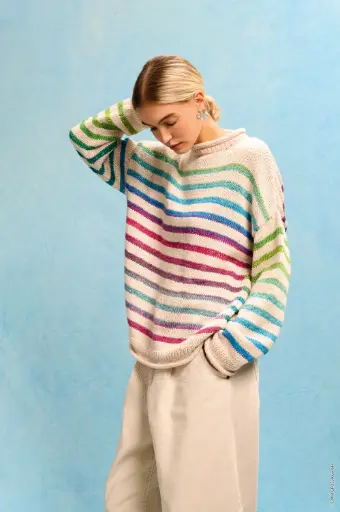 Top Down trui met streepmotief in Cotonella | Lana Grossa