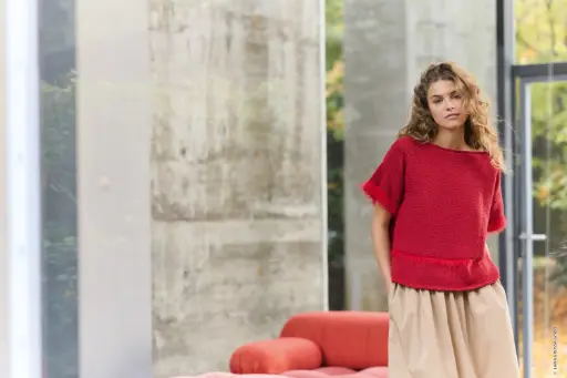 Topje met ongelijke delen in Corallo | Lana Grossa