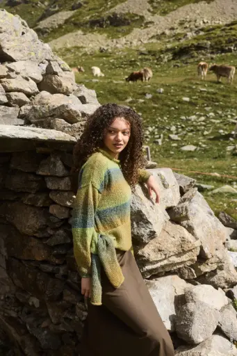 Dwarsgebreide trui in Gomitolo Fumo | Lana Grossa