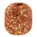 Lana Grossa Gigante Multi (70% Alpaca Fine, 30% Polyamide; 50g - 150m) 5 bollen / 6 bollen / 7 bollen in kleur 102 (Grijsbruin / Petrolblauw / Mandarijn / Grijsrood / Donkerviolet / Paars) en Lana Grossa Cosmo (100% Katoen met pailletten; 100g - 260m): 3 bollen / 3 bollen / 4 bollen in kleur 8 (Karamel); breinaalden 7mm, rondbreinaald 7mm, kabel 50cm, 4 hulpnaalden.
