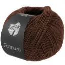 Lana Grossa Ecopuno (72% Katoen, 17% Merino), 11% Baby Alpaca; 50g - 215m): 4 bollen / 5 bollen / 5 bollen / 6 bollen in kleur 224 (Chocoladebruin) en Lana Grossa Natural Superkid Tweed (60% Superkid Mohair, 30% Zijde, 7% Katoen, 3% Polyester; 25g - 200m): 4 bollen / 5 bollen / 5 bollen / 6 bollen in kleur 637 (Nougat); rondbreinaalden 3mm en 5mm, kabel 40cm en 80cm,  kabelnaald
