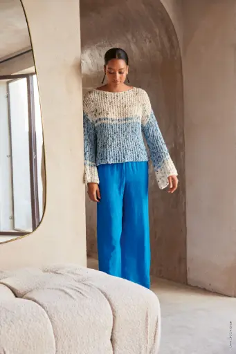 Top Down trui met gaatjesmotief in Popcorn | Lana Grossa